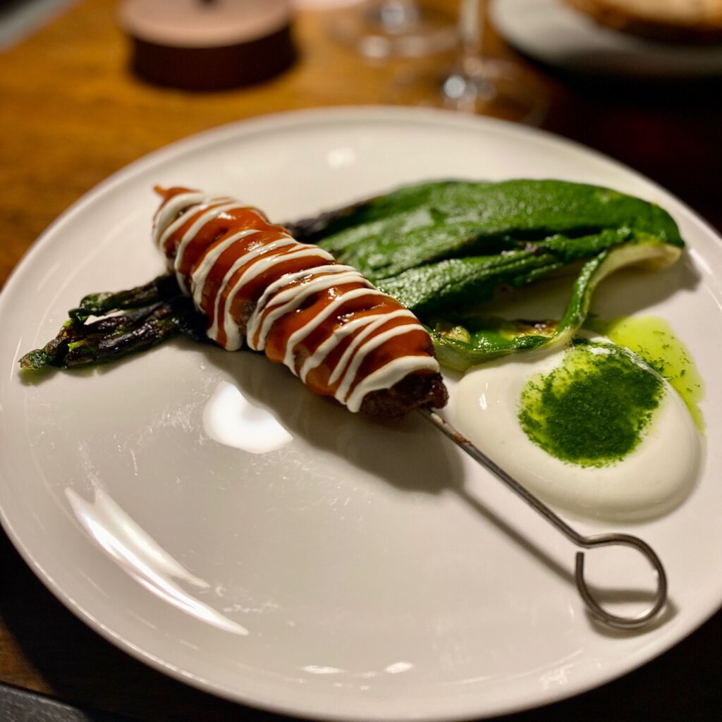 Ordiniamo anche lo Spiedo di agnello con lattuga grigliata, salsa spicy e yogurt e ci immergiamo in un felice incontro tra culture: un agnello che ti sembra di aver mangiato sempre e invece ti regala il fascino di una prima volta.