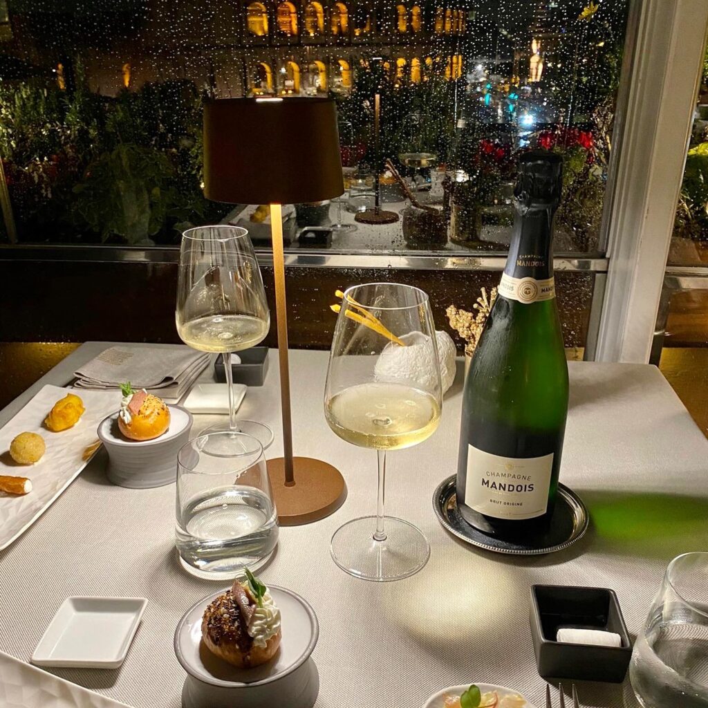 Champagne vista Colosseo al ristorante Aroma di Roma guidato dallo chef Di Iorio all’interno di Palazzo Manfredi