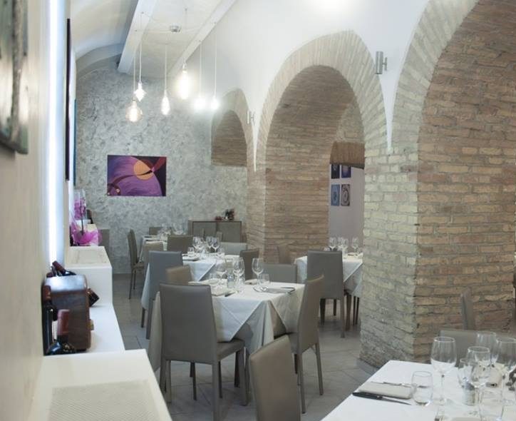L’ambiente è elegante e accogliente. Il locale si sviluppa su due livelli: all’ingresso, al piano terra, c’è il bar dove consumare una colazione sfiziosa, un brunch o un aperitivo serale. Al piano inferiore invece, lo scenario cambia. Il ristorante si sviluppa in una sala di 280mq tra splendide arcate di mattoni che si alternano a pareti candide. Tutto ruota intorno a colori chiari e neutri come il bianco e il tortora. Quadri colorati e luci di design completano l’arredamento. Non manca la saletta privata per cene più intime.