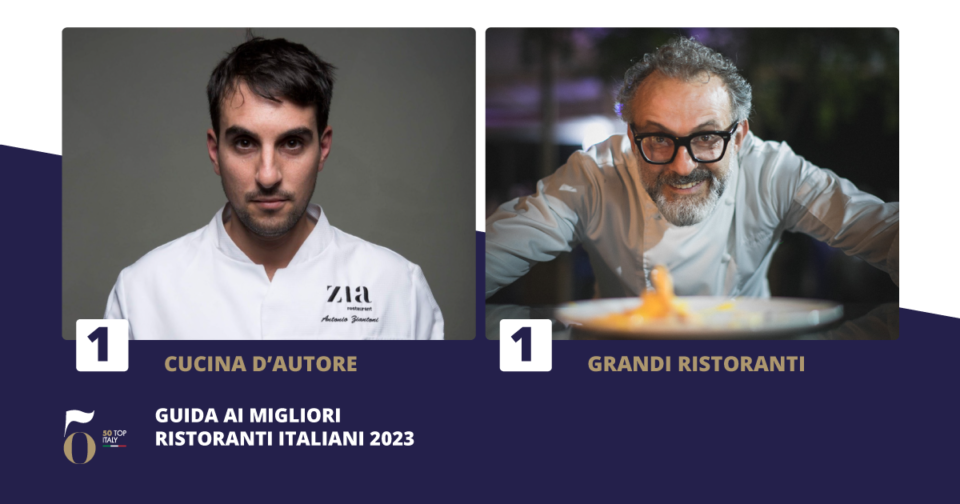 “Osteria Francescana” di Massimo Bottura al vertice per la guida 50 Top Italy per la categoria Grandi Ristoranti e “Zia Restaurant” di Antonio Ziantoni nella categoria Cucina d’Autore. Il podio dei Grandi Ristoranti è completato da “Uliassi” di Mauro Uliassi al secondo posto, e da” D’O” di Davide Oldani in terza posizione. Per la categoria Cucina d’Autore, sul secondo gradino del podio da Gorini e Marotta Ristorante al terzo posto.
