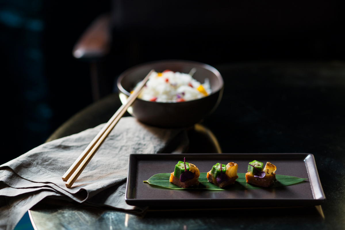 I piccoli piatti di ispirazione orientale sono la taglia perfetta per creazioni originali, con ingredienti locali selezionati che bene si accompagnano ai cocktail dall’insolito twist asiatico.
