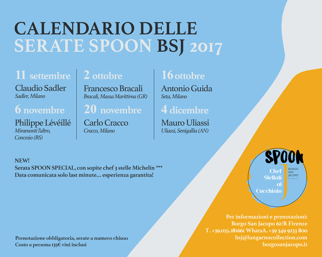 Quest’anno è prevista inoltre una primizia: la serata Spoon Special che vedrà protagonista uno chef 3 stelle Michelin. La data verrà comunicata a sorpresa, e anche l’ospite sarà in riserbo fino all’ultimo minuto.