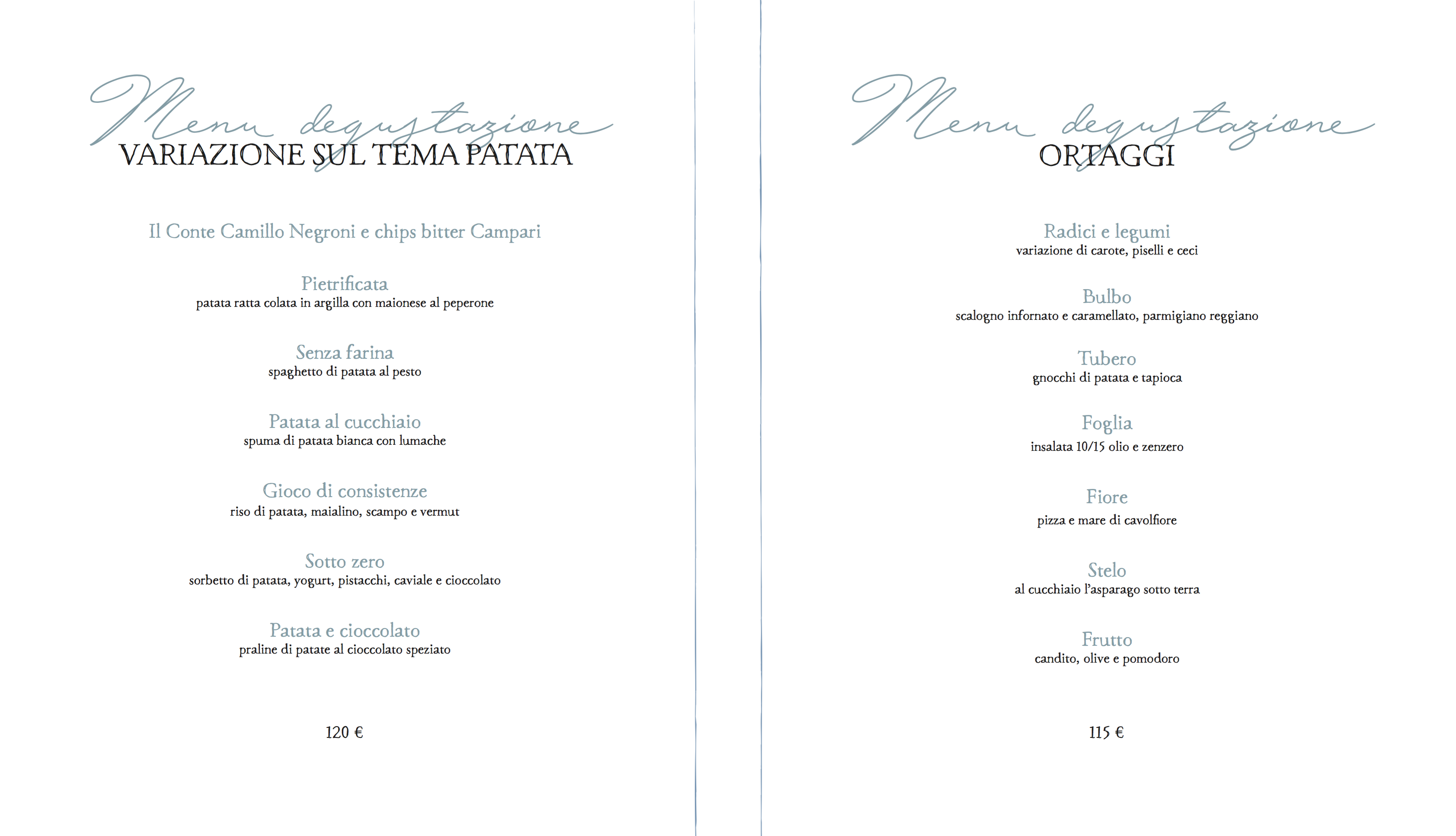 Nessun cambio invece sulla carta dei dolci, sempre a firma di Loretta Fanella per il menu à la carte e di Peter Brunel per i menu degustazione.