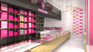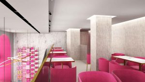 Lo store di Milano è uno spazio sviluppato in verticale, con un laboratorio che garantirà la finitura delle produzioni, un piano vendita con un grande banco a vista ricco di golosità e un piano rialzato per il servizio al tavolo. Tutto all’insegna dell’esperienza emozionale del gusto e visiva del cliente.