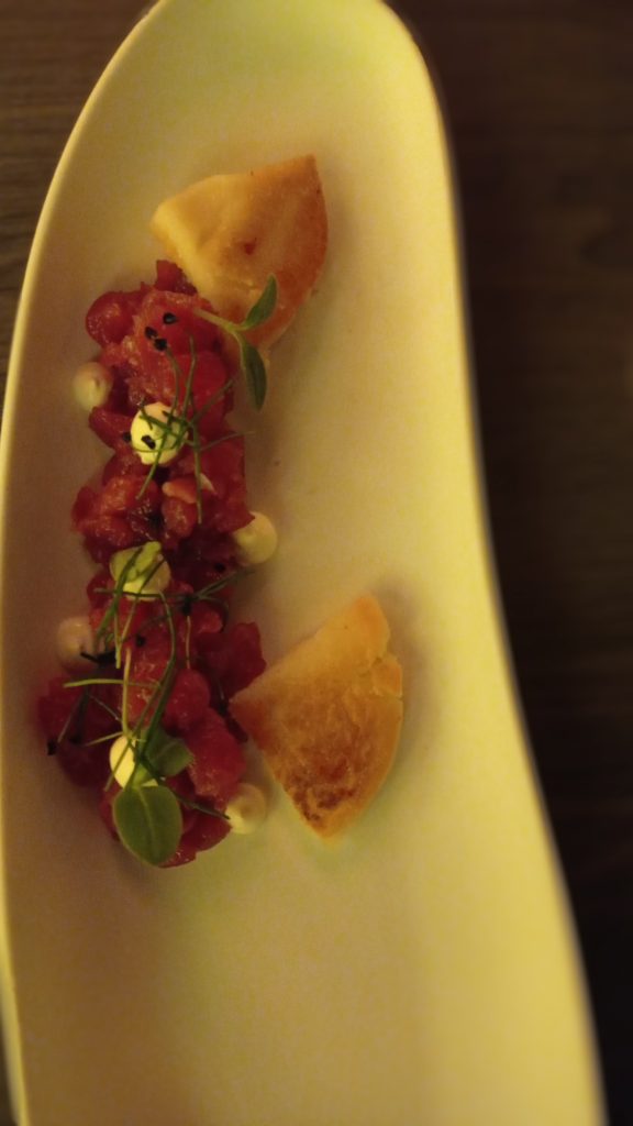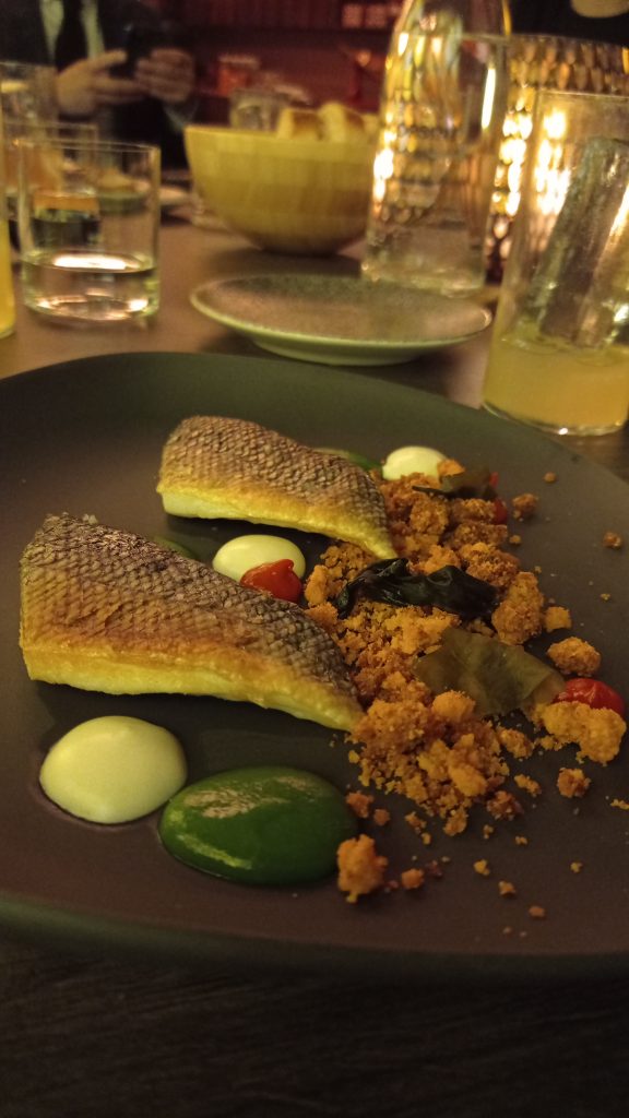 Da pochi giorni, Boreale si è arricchito di un’area lounge che chiama a rapporto la carta vini dedicata, lavoro certosino del sommelier Mariano Penza. Noi ci siamo andati una sera a cena, l’antipasto era a base di tartare di tonno rosso, con Arepa di mais bianco, gocce di panna acida e olio al sesamo. E, alzando l’asticella, come primo piatto, spaghetto fino mantecato in bisque con cacio e pepe, crudo di gambero rosso di Mazara e la sua essenza, pepe tostato e polvere essiccata di olive. Infine, il secondo: spigola scottata, con crumble al pomodoro, salsa alla lattuga romana e crema a base di nduja.