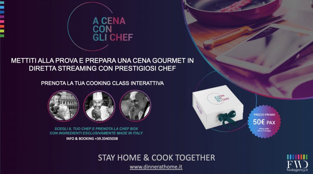 I grandi chef sbarcano virtualmente nelle cucine degli italiani grazie all’iniziativa ideata da Pier Paolo Roselli di Dinner At Home e promossa da Dimensione Suono Soft. A Cena Con Gli Chef, questo il nome del progetto, è un ciclo di cooking class experience, tenute da alcuni tra gli chef più acclamati d’Italia, da seguire in diretta streaming comodamente da casa attraverso computer, smartphone e tablet.