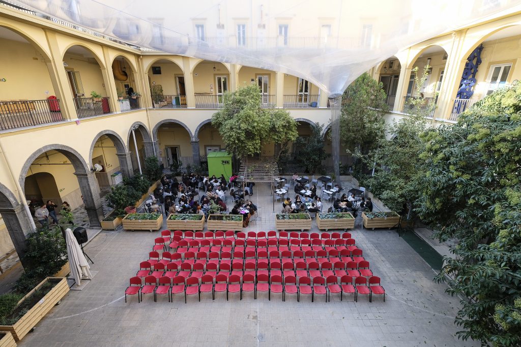 FOQUS, per Napoli, è una ventata d’aria buona. Rappresenta un nuovo modo di concepire e coniugare cultura, arte, economia e politiche sociali. Non per caso il progetto prende vita proprio nei Quartieri Spagnoli, cuore pulsante di Napoli. Con Qucine Sociali, la formula food si dipana tra ristorante e pizzeria, senza dimenticare il Lounge Bar coordinato da esperti mixologist. Si può, dunque, sorseggiare e spizzicare ascoltando musica, accompagnati dalle luci del tramonto. Con la possibilità di spaziare tra i tavolini collocati direttamente nella corte principale e le ampie terrazze con vista sulla città. Immersi in un contesto ricco di cultura e arte, con migliaia di libri della prima biblioteca dei Quartieri Spagnoli, le opere d’arte permanenti di FOQUS e le mostre temporanee della sua nuova Galleria.