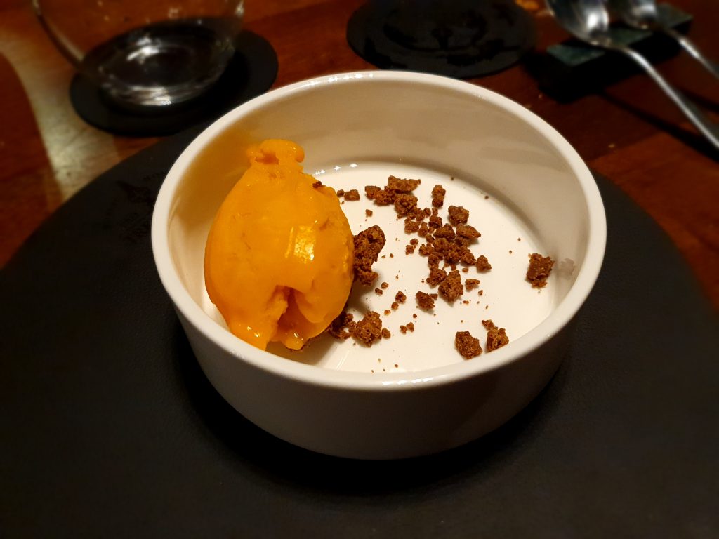 Ma il piatto più complesso, innovativo e spiazzante della serata è stato lui: il Risotto di stracchino con composta di visciole, whisky torbato e cacao. Ogni forchettata sprigiona una sensazione diversa, dal gusto avvolgente del formaggio all’affumicato del whisky, dal dolce amaro delle visciole al cacao. Un piatto ben riuscito che funge da anello di congiunzione tra le tante anime del Treefolk’s.