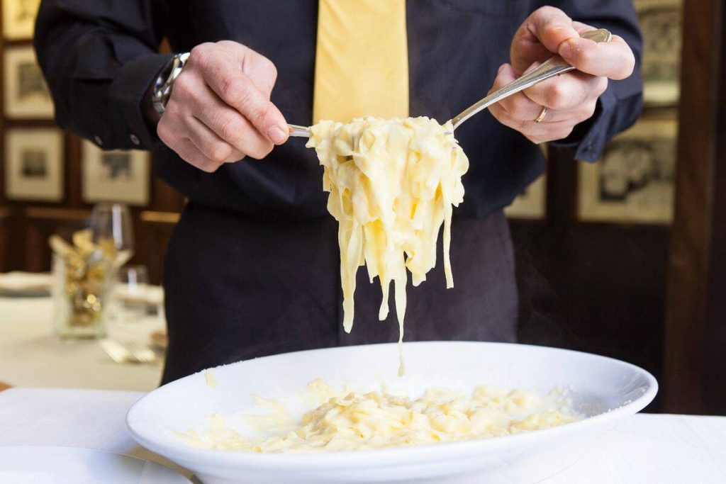 Panzanella, vitello tonnato, tonnarelli cacio e pepe, saltimbocca e le iconiche fettuccine alla Alfredo con parmigiano reggiano 24 mesi e burro Beppino Occelli. Questi alcuni dei piatti in menu che per tutto il mese di agosto si potranno trovare nello storico indirizzo di via della Scrofa. E per dessert, imperdibile il maritozzo con panna e arancia candita.