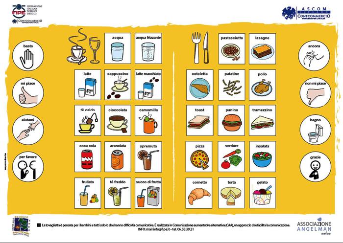 E’ l’iniziativa di FIPE e Confcommercio Bergamo che proporrà su scala nazionale tovagliette illustrate nei locali per facilitare le ordinazioni a bambini con difficoltà comunicative e stranieri
