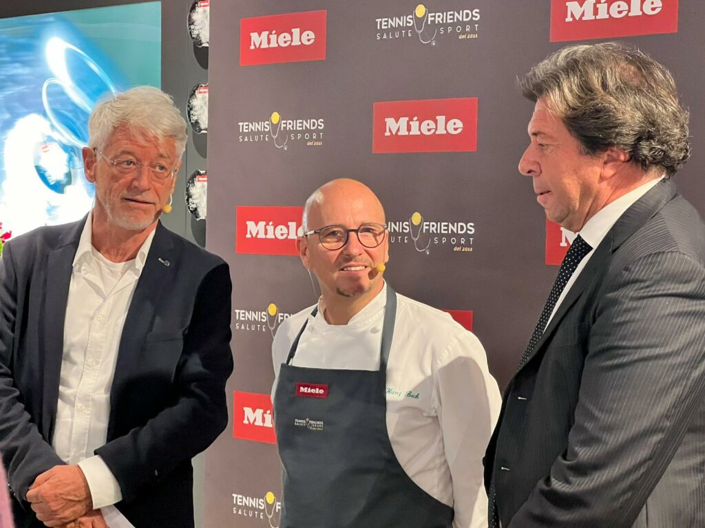 La kermesse è stata anticipata da un appuntamento di presentazione che ha coinvolto, al Miele Experience Center di via Barberini a Roma, Alessandro Covi Amministratore Delegato di Miele Italia, Giacinto Abele Miggiano Professore e Specialista in Nutrizione Umana all’Università Cattolica del Sacro Cuore, Prof. Giorgio Meneschincheri Presidente e Fondatore di Tennis & Friends Sport e Salute e lo Chef stellato Heinz Beck.