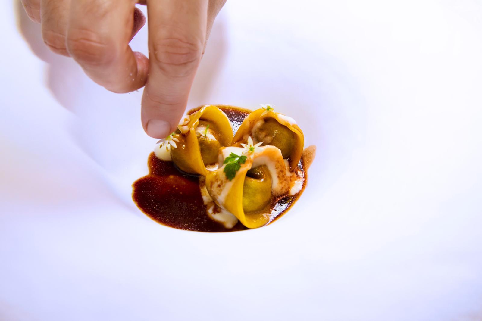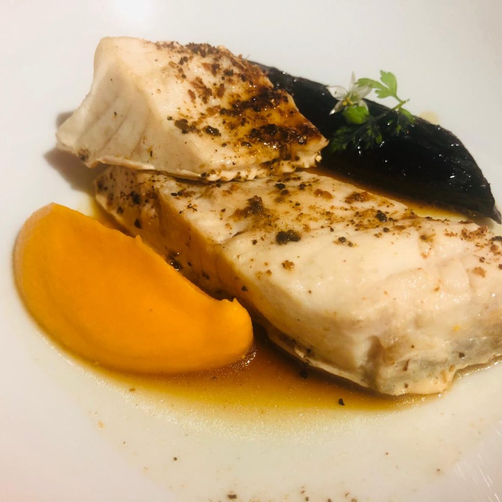 I due Resident Chef hanno poi proposto degli ottimi tortelli di bufala con caffè e cacao, seguiti dall’Ombrina con carote fermentate e salsa ai frutti rossi.