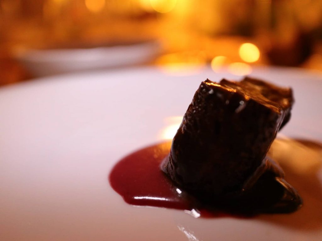 L’Anatra con indivia, funghi e demi glace è stato invece il piatto proposto da Chef Brandini e Chef Bonifazi mentre il Cervo con lamponi alla brace, fondo vegetale e pigna marittima è stata la portata realizzata da Fabio Verrelli d’Amico.
