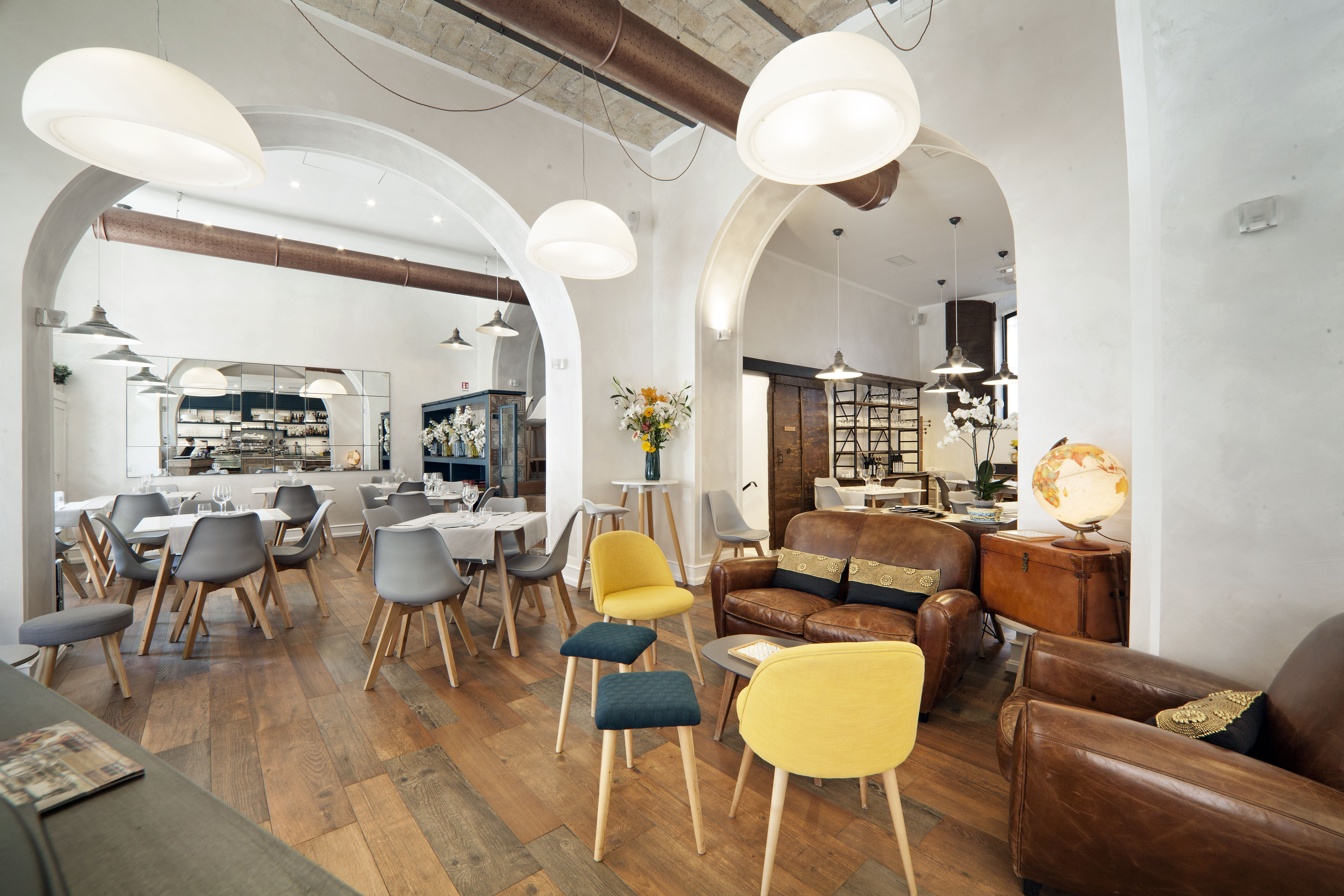 Porte aperte sul mondo è la mission. E infatti le porte sono protagoniste dell’arredamento di Altrove sia nel grande bancone bar ma anche nella finestra che si trova in fondo alla sala. Il ristorante, che si trova nel quartiere Ostiense, il food district di Roma, è suddiviso su due piani per un totale di 253 mq. Nella parte interrata si trova la cucina mentre al piano terra troviamo il laboratorio di pasticceria e panificazione, il bar e la sala. L’atmosfera è rilassante, confortevole e ospitale con divanetti e cuscini colorati. La proposta gastronomica nasce dall’attenta unione di tante realtà multiculturali. Gli chef si confrontano quotidianamente con gli allievi dando vita ad un menu ricco di sapori provenienti da tutto il mondo.