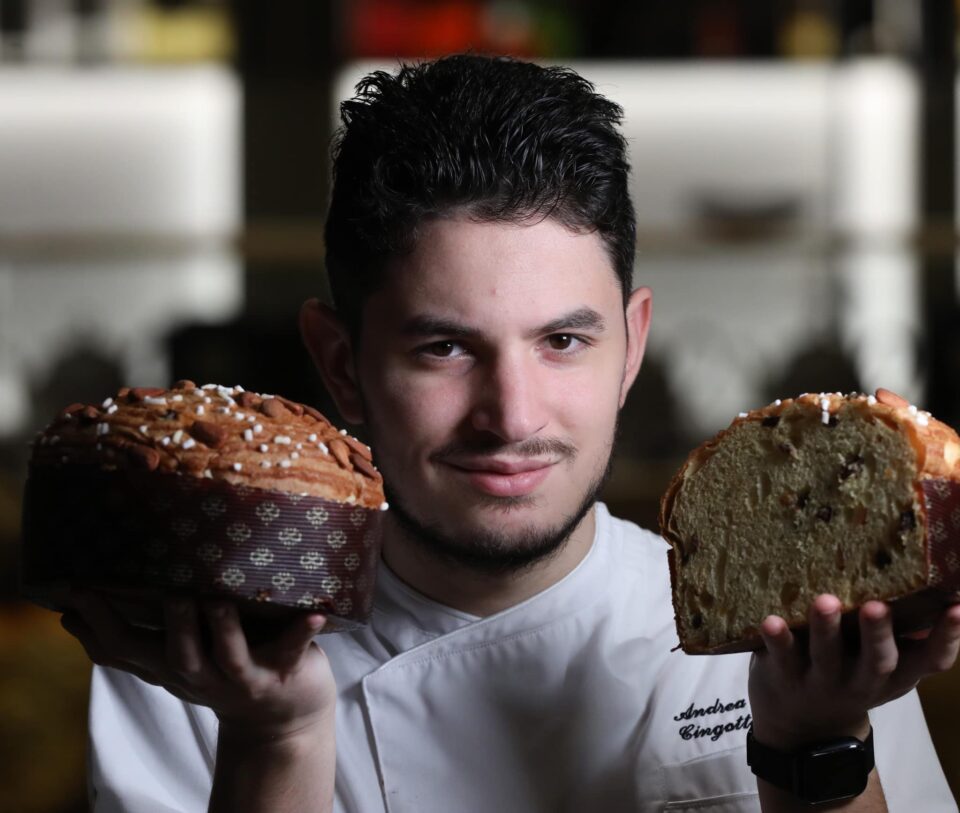 Panettone Sottosopra. La ricetta di rivisitazione creativa del Re dei grandi lievitati delle feste pensata per Panettone Maximo 2022 da Andrea Cingottini giovane e motivato Pastry chef di Acquolina Ristorante, 2 stelle Michelin, e Velo – Salotto di Alta Pasticceria su via del Corso a Roma.