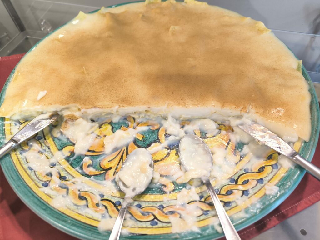 in ogni caso, imperdibile la Testa di turco, il goloso dolce locale preparato con crema biancomangiare alla cannella che sia alterna a sfoglie sottilissime fritte che gli conferiscono consistenza senza, tuttavia, appesantirlo.