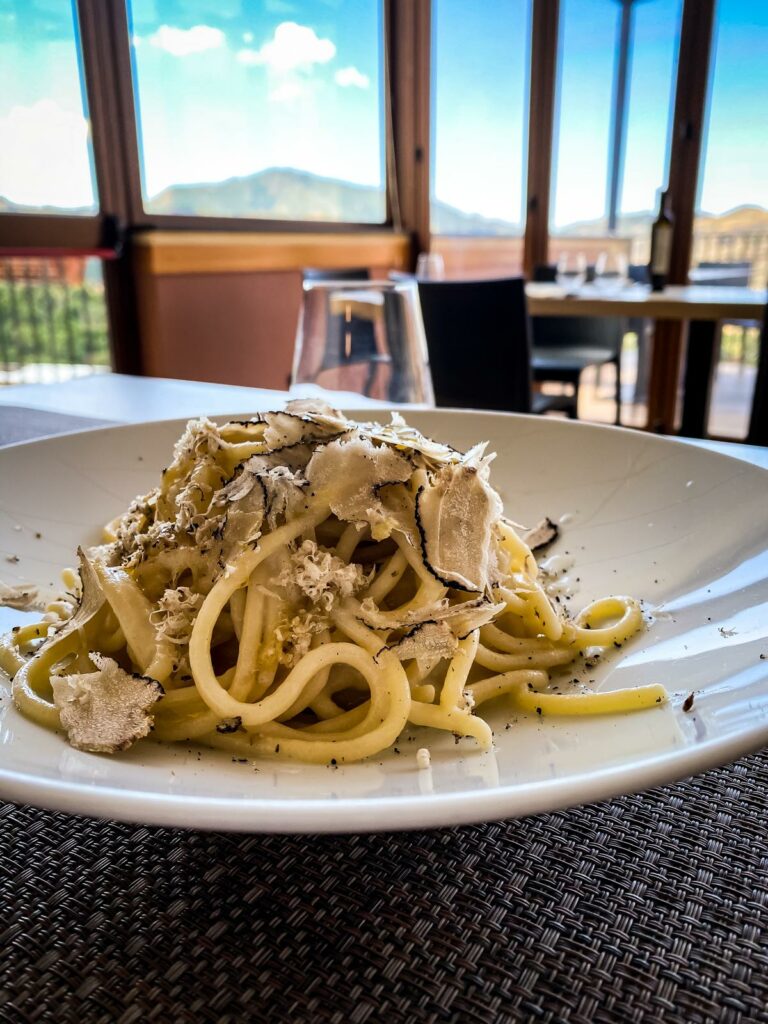 Dalle classiche Pappardelle ai funghi porcini al Macco di fave, piatto tipico della tradizione castelbuonese a base di fava larga di Leonforte (presidio Slowfood), con funghi di bosco, finocchietto selvatico e croccante di pane di Tumminia, dalla Zuppa di legumi con funghi di bosco e gratinata di caciocavallo ai Tagliolini alla Natale con pomodorini, mandorle, pesto di basilico e ricotta fresca e, ancora, i panzerotti ai porcini e ricotta in salsa di manna e salvia e le Tagliatelle agli antichi sapori madoniti con pomodorini e mollica tostata aromatizzata con erbe montane.