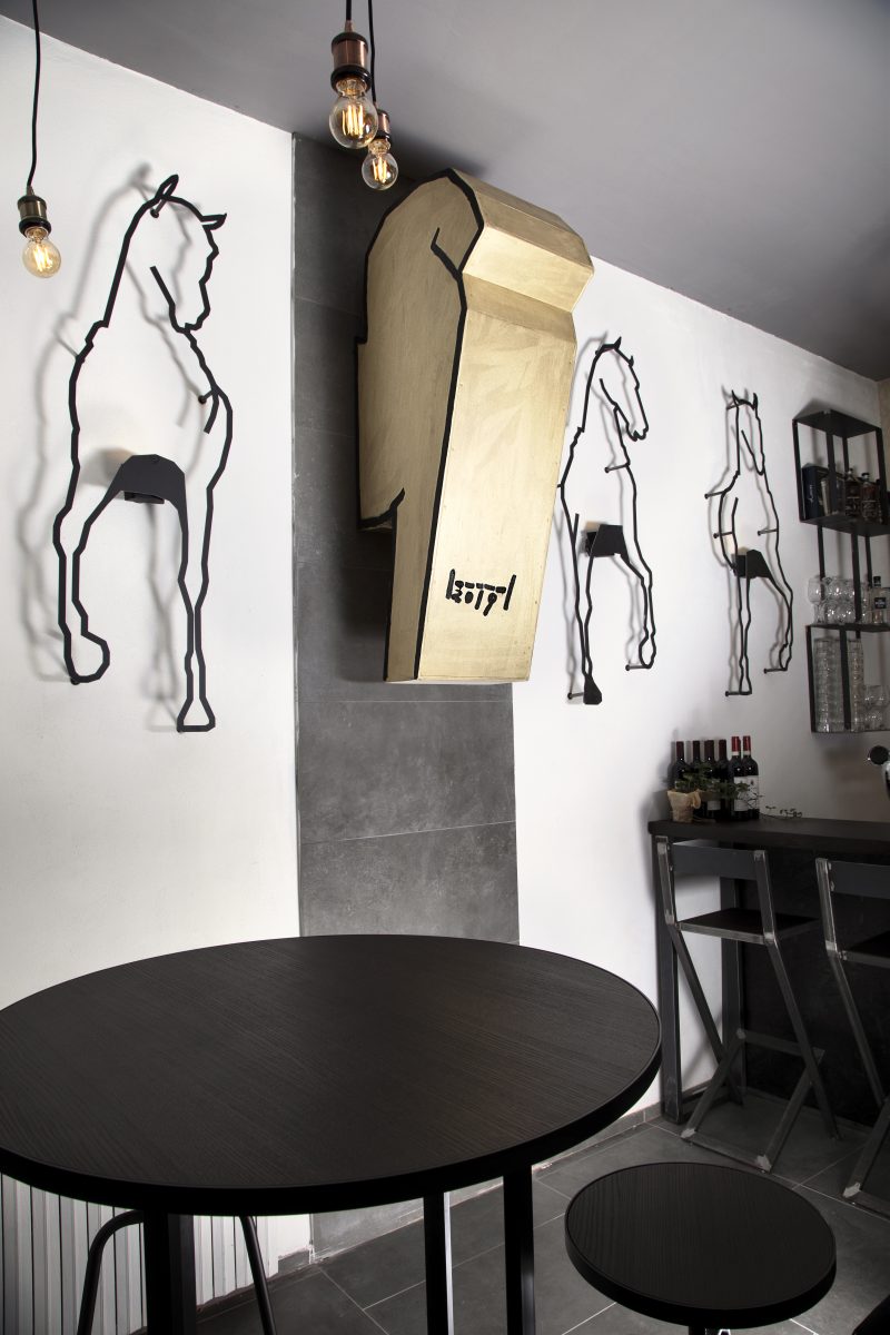 L’unica cosa che cambia davvero rispetto ai tipici bacari veneziani, è proprio l’arredamento: urbano, di design, ma con fortissimi richiami alla tradizione, a partire dai materiali come il legno scuro del lungo bancone, i tavoli e le panche, il ferro e il corridoio che suggerisce il fascino delle calli veneziane.