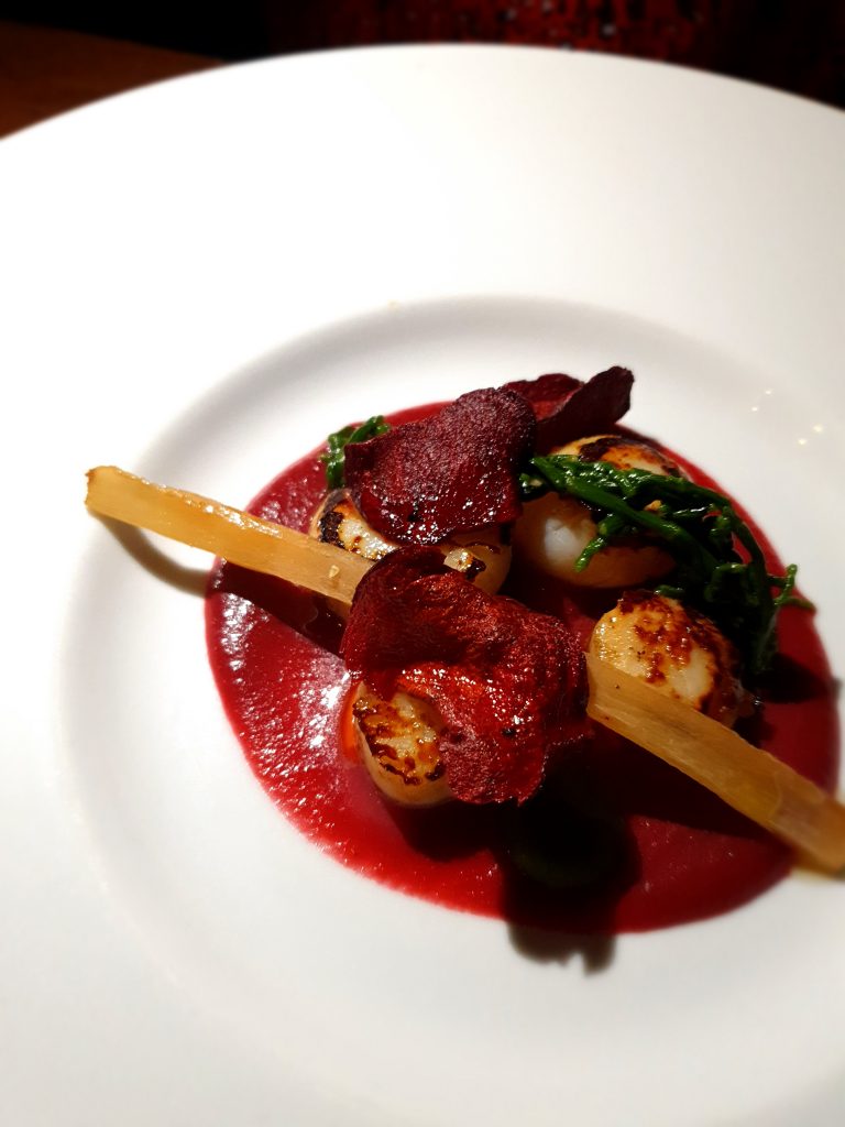Un’Italia multietnica, quindi, quella rappresentata dai piatti di chef Quaranta. Un esempio è “Sgombro sei Fritto”, un antipasto a base di sgombro marinato nel sakè e fritto accompagnato da una spuma di bufala, cicoria e cipolla rossa. O ancora dal “Cappe Sante”, un secondo piatto a base di kimchi di scorzonera, salicornia e rapa rossa. Entrambi i piatti sono contenuti in uno dei menu degustazione “A Occhi Chiusi” (4 portate con altrettanti cocktail il pairing a 60 euro).