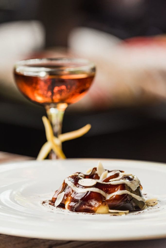 Un consiglio: per il cocktail pairing affidatevi alla bravura e alla sapienza dei barman e dei ragazzi di sala (tutti preparatissimi). Sapranno stupirvi con proposte intriganti e inaspettate come il “No Church in the Wild”, da abbinare ai cappellacci di agnello, a base di cynar, Cocchi chinato, Bulleit bourbon e olio al tartufo.