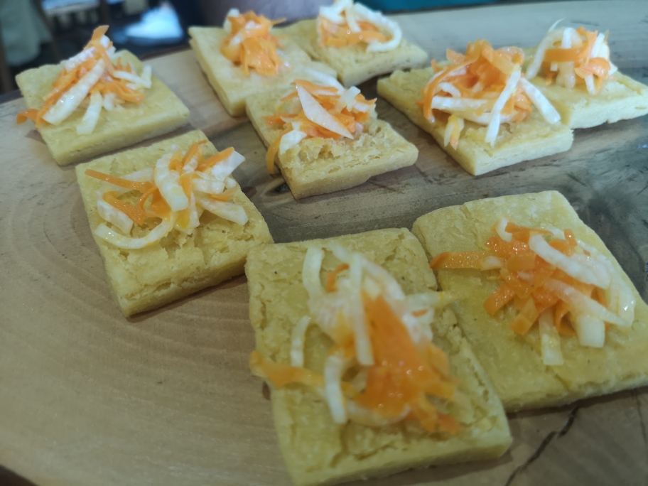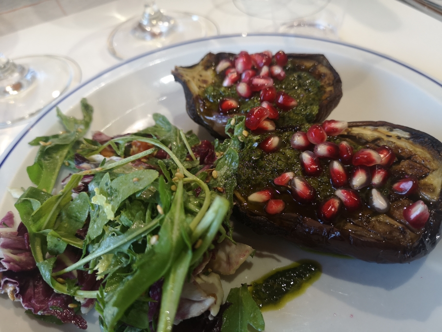 Ad aprire il pranzo un antipasto a base di panelle con verdure croccanti, zenzero e curcuma. A seguire rigatoni con zucca rossa, salvia e provola, mix perfetto di sapori. Come secondo piatto Linda ha proposto delle barchette di melanzane arrostite con salsa verde e melograno accompagnate da un’insalata condita con vinaigrette di tahina, erbette di campo, carote e sesamo. Dulcis in fundo, chiude il pasto una strepitosa torta di ricotta con miele d’api nere e mandorle tostate. Indimenticabile.