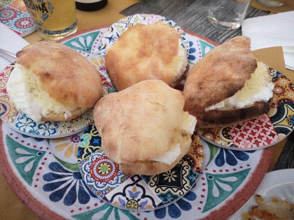 Tra le golosità del territorio da non perdere vi è la focaccia con ricotta. Si tratta di un panino artigianale, al quale viene spalmata dell’ottima ricotta di pecora alla base, e viene arricchito con una cascata di caciocavallo a striscioline, con aggiunta di pepe e sale. La specificità è conferita dal forno, quello di sempre, alimentato a legna artigianale e incastonato nel locale, un gioiello conservato dal 1901 che lavora a 400°C. Lo possiamo definire uno street food senza tempo che alla tradizione ha innestato l’innovazione e il ricambio generazionale che ridato nuova linfa al locale.