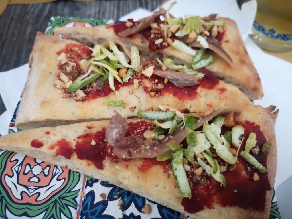 Si tratta di un piatto storico per le sue peculiarità e il mix gradevolissimo di prodotti di territorio (tuma o ricotta, acciuga, cipolla, pan grattato e caciocavallo), d’altronde le acciughe sono quelle di Aspra, il bagherese è terra di olio e formaggio e tutto questo conferisce forza e autorevolezza al prodotto che si lega con forza con le tradizioni del borgo di Aspra.