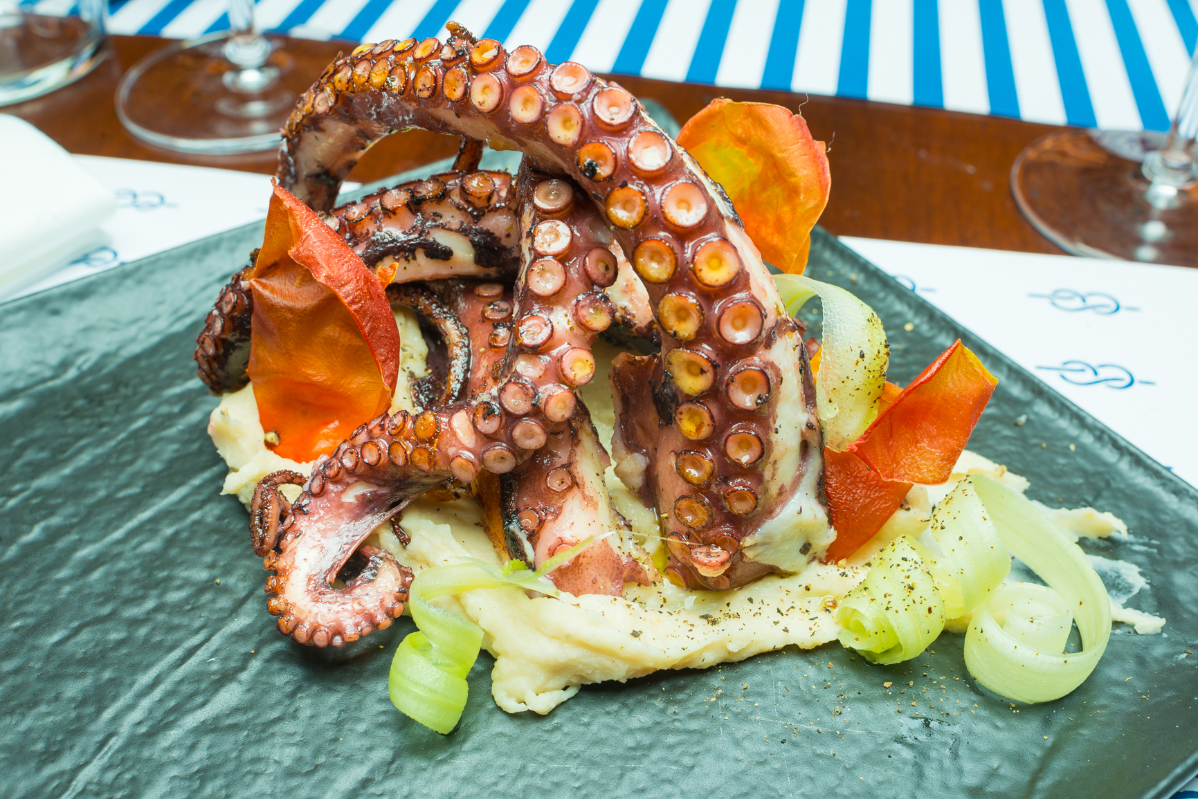 Tra i secondi polpo arrostito in padella con crema di legumi piccante, sandwich di alici e scarola con olive al forno, miele d’arancia e crema al formaggio oppure i burger di tonno, salmone e gameri. E ancora i fritti, caldi e croccanti come lo stecco di baccalà su vellutata di stagione, il cartoccio di alici, bucce di patate cacio e pepe o i calamari con salvia e limone.
