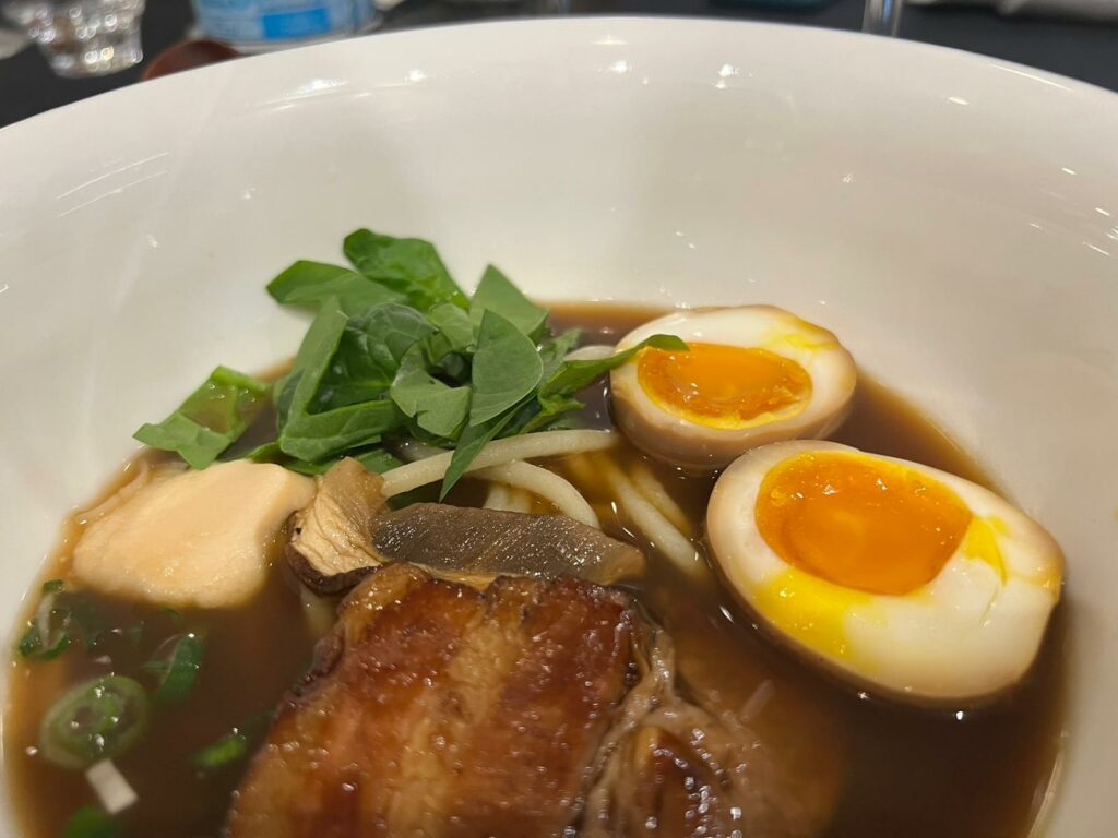 Riporta sulla terra, ricordando alcuni dei piatti a cui il palato è più abituato, ma non per questo meno unici, una sorta di “comfort dishes” come Osaka, ovvero un babà-toyaki con polpo, sedano rapa tsukemono, puntarelle e tako-bushi, Kobe cioè i ravioli di wagyu e bacche di goji, topinambur, cioccolato bianco, te lapsang e il saporito ramen Kagoshima che, richiamando il gemellaggio con Napoli, è realizzato con spaghettoni di grano duro, colatura di alici e pancetta di maiale Chashu.
