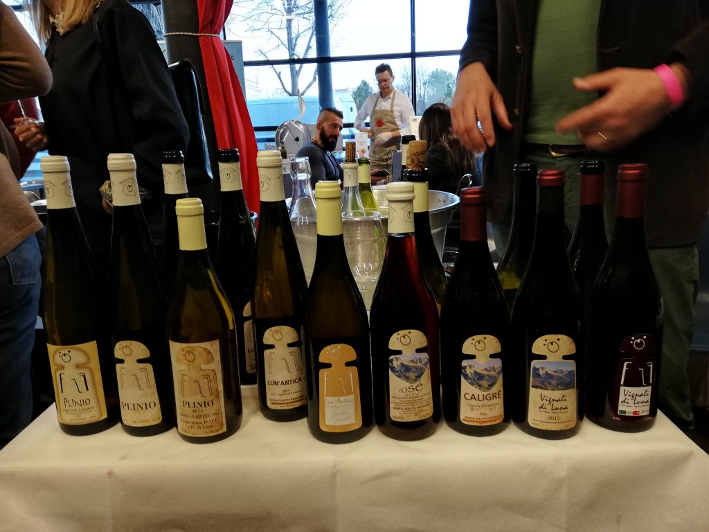 Terra della Luna è un’azienda agricola nata nel 2006 a Ortonovo, o per meglio dire a Luni visto che da poco più di un anno il comune diffuso che ospita i resti dell’antica colonia romana di Luna (in origine porto etrusco e greco) ha cambiato nome. In queste verdeggianti colline dalla millenaria tradizione vitivinicola (nel suo Naturalis historia Plinio affermava che “il vino di Luna ha la palma tra quelli dell’Etruria”), in cui l’estremo lembo della Riviera di Levante, si abbraccia con la Toscana settentrionale tra le Alpi Apuane e il mar Ligure Alessandro Vignali coltiva le sue uve su terreni appartenuti un tempo alla famiglia carrarese Fabbricotti, antichi proprietari della Tenuta di Marinella, che vi realizzava vini pregiati già due secoli prima come il “Bianc Bon”. La produzione si aggira intorno alle 10.000 bottiglie l’anno, divise in svariate etichette, i bianchi da uve Vermentino e il rosato e i rossi da Shiraz e Grenache. In fiera Alessandro ha sfoderato una batteria di tutto rispetto con vermentini di diverse annate per un totale di nove vini in degustazione. Senza stare a girarci intorno, i vini di Terra della Luna sono uno più buono dell’altro, tutti interpreti fedeli di un territorio vocato e delle rispettive annate. Quello che ci ha letteralmente rapiti è il Lun’Antica 2014 Liguria di Levante IGT, un Vermentino rifermentato in bottiglia, con un perlage fine e delicato, quasi impercettibile, dovuto alla pressione inferiore a un atmosfera, realizzato con una base che fa macerazione sulle bucce. Giallo oro brillante con una lievissima velatura, ha un naso intenso di note minerali che richiamano gli idrocarburi e vanno dal cerino spento al kerosene, accompagnate da sfumature salmastre (salsedine, focaccia alle olive) e di frutta gialla matura, il tutto incorniciato da delicati sbuffi di salvia e rosmarino. In bocca è intenso e pieno, dotato di una spiccata freschezza e di una bella vena sapida che assieme alla bollicina sottile rendono la beva quasi compulsiva.