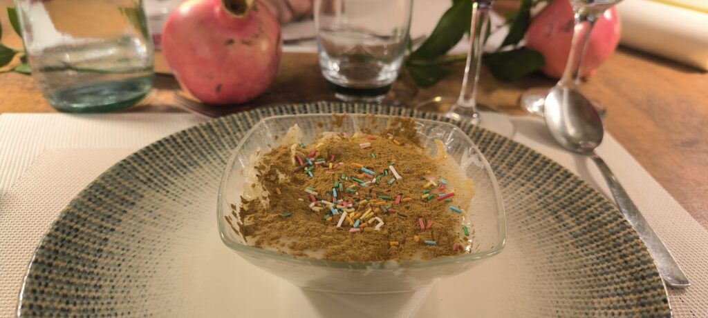 Quanto ai dessert non avrete che l’imbarazzo della scelta tra quelli classici come la “testa di turco”, dolce tipico costituito da una crema di latte ( biancomangiare) intervallata da sottilissime sfoglie di pasta fritta ricoperte da cannella e confettini colorati, quelli rivisitati come il cannolo “fai da te” costituito da sfoglie di pasta fritte, accompagnate da una crema di ricotta, pistacchi e ciliegine candite e, in ultimo, non per bontà, il cuore di miele Bergi, un semifreddo alle mandorle pizzute dal cuore di miele di Ape Nera Sicula glassato al cioccolato bianco: un irresistibile peccato di gola.