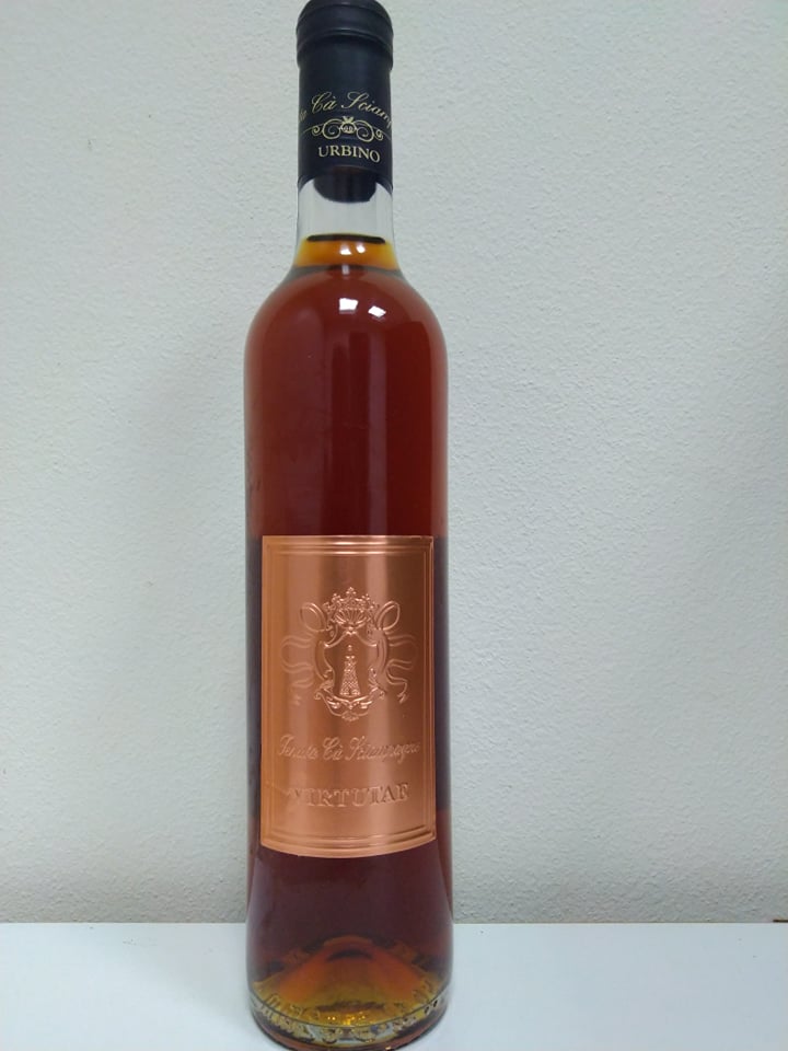 Ottenuto da uve Bianchello stramature allevate in regime biologico, il Virtutae di Tenuta Cà Sciampagne è un passito davvero molto particolare. Siamo nelle Marche, in una zona collinare (380 mt slm) alle pendici dei Monti delle Cesane, in località Sant’Eufemia, nel comune di Urbino. Le notevoli escursioni termiche diurne e notturne (in alcuni momenti dell’anno oltrepassano i 20 gradi centigradi) consentono la concentrazione di aromi e mineralità nelle uve, che vengono vendemmiate manualmente e disposte in cassette di legno. Dopo un’ulteriore selezione manuale le uve vengono appese in fruttaia per l’appassimento per oltre 5 mesi. Raggiunta la sovramaturazione avviene la diraspapigiatura e la pressatura delle vinacce con sistemi tradizionali. Dopo una breve decantazione dei mosti in silos di acciaio (circa 48 ore) questi vengono posti in fermentazione, maturazione ed affinamento in botti di legno di robinia (acacia) per almeno 5 anni. La fermentazione è spontanea ad opera di soli lieviti indigeni. Se ne ottiene un vino non chiarificato, non filtrato, senza l’aggiunta di solforosa e imbottigliato manualmente per gravità.