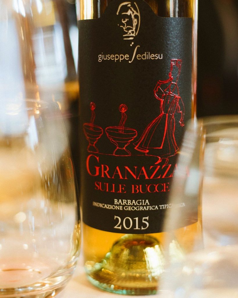 Per permettere alle peculiarità del vitigno di svilupparsi ed esprimersi in tutta la sua ricchezza, la fase di maturazione in grandi botti di rovere neutro ha una durata variabile e può arrivare a durare persino 3 anni (come accaduto nel primo anno di produzione). La Granazza Sulle Bucce di Sedilesu è un vino caldo, intenso e mediterraneo che esprime con forza ed energia il carattere autentico della Barbagia. Giallo oro intenso, al naso esprime note di nespole mature e albicocca disidratata, accompagnate da sbuffi di erbe aromatiche (timo, salvia e santoreggia) e macchia mediterranea, zafferano e miele.