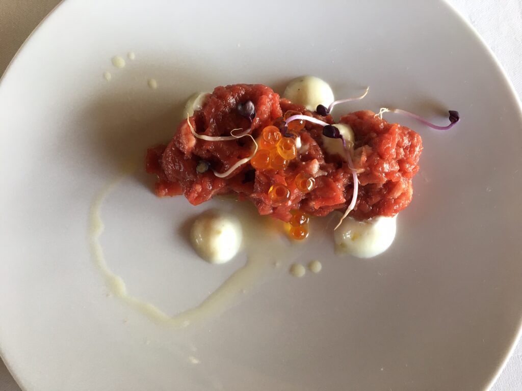 Per gli sportivi anche un Menù del golfista – Light lunch che comprende un antipasto, un primo o un secondo e dolce a 25 euro, in carta una scelta tra cinque antipasti, tre primi e quattro secondi, che cambierà ogni 10 giorni.