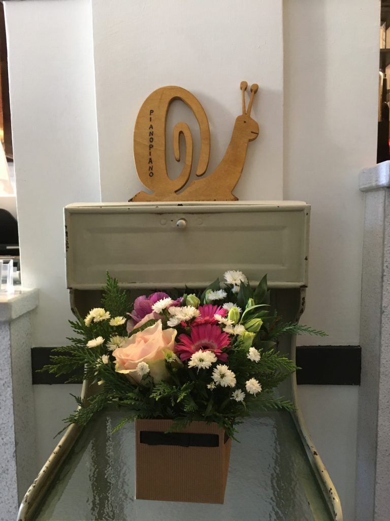 Piano Piano è al civico n° 5 di Piazza Maggiore, con ingresso anche dal n° 2 di via d’Azeglio. Una posizione prestigiosa e ambita, anche perché storicamente è il centro geografico di Bologna e un cippo indica, proprio lì, l’inizio del Cammino degli Dei che porta fino a Firenze.