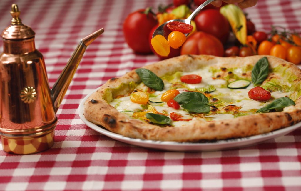 Ogni anno la proposta della carta cambia. Questa volta l’artefice della magia è il pizzaiolo Vincenzo Arianna. Nel rispetto delle sue origini napoletane, ha selezionato ingredienti di primissima qualità a cominciare, ovviamente dalle farine. La scelta è caduta su quelle del Molino Caputo, miscelate secondo una sua ricetta segreta, che, abbinate a una lunga lavorazione e una lievitazione di 48 ore con pasta madre, danno un ottimo risultato.