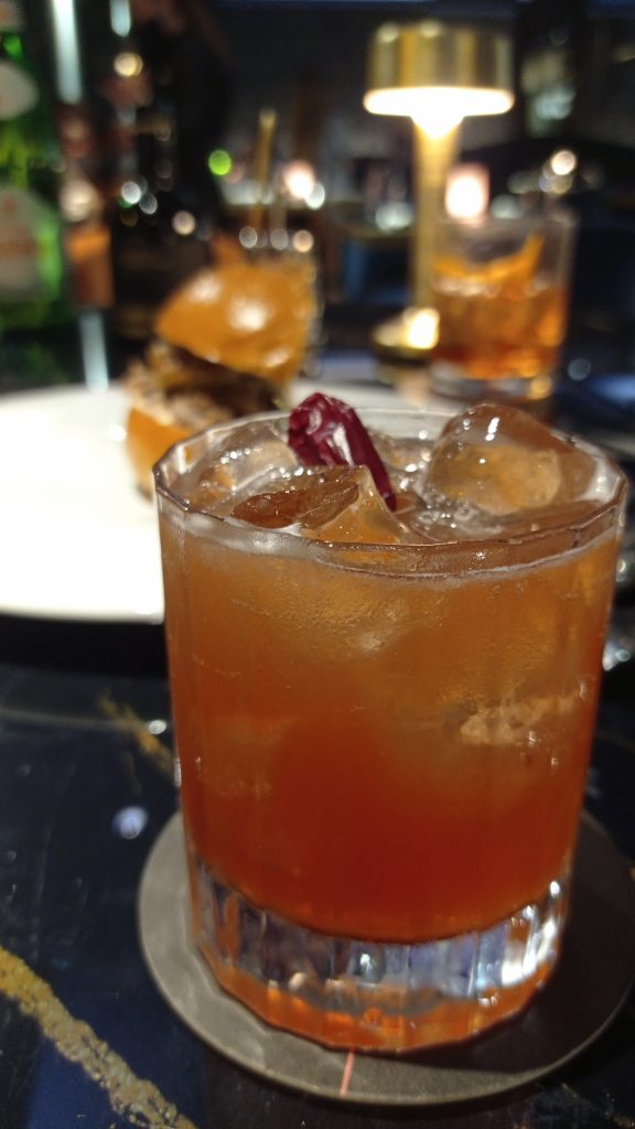 La carta dei vini è pronta a regalare emozioni, ma Bros and Bun punta sul cocktail bar con le creazioni di Giuseppe Esposito: classe ’86, napoletano. Nel suo background, Londra e lo storico Ivy Club. Successivamente diventa head bartender dello Sky Garden di Londra, infine da Arros Qd, la parentesi londinese del pluristellato Quique Dacosta. Da Bros And Bun sfodera competenza e quella coreografia che un po’ ti aspetti dal settore. L’intero menu è stato accompagnato dalle sue ricette, piacevolissimi momenti funambolici: laddove ti aspetti un contrasto, arriva un’accomodante assonanza e viceversa. Equilibri ragionati ed ottimo balance. Abbiamo adorato il suo Plum Negroni.