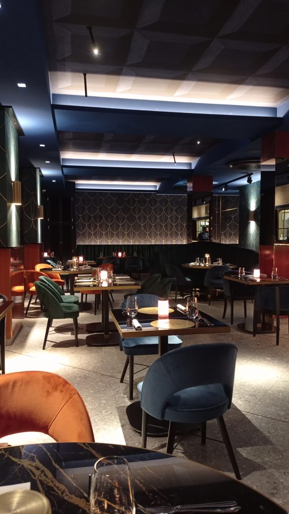 Ambienti di ispirazione Art Déco, linee morbide, legno di mogano, marmo, divani in velluto capitonné, carta da parato dal disegno rétro e, per l’illuminazione, un evidente capolavoro di lightdesign. La cucina è a vista sulla sala, preceduta dal bancone mixology che fa molto New York, affascinante trait d’union tra l’ambiente di lavoro e la sala, mentre un po’ ovunque campeggia un certo fenicottero: il logo stilizzato scelto per rappresentare Bros And Bun. animale considerato sacro nell’antichità, “uccello dei quattro elementi” (aria, acqua, fuoco, terra), da sempre simbolo di positività, fascino, eleganza e sincerità. Bravi ragazzi, avanti così.