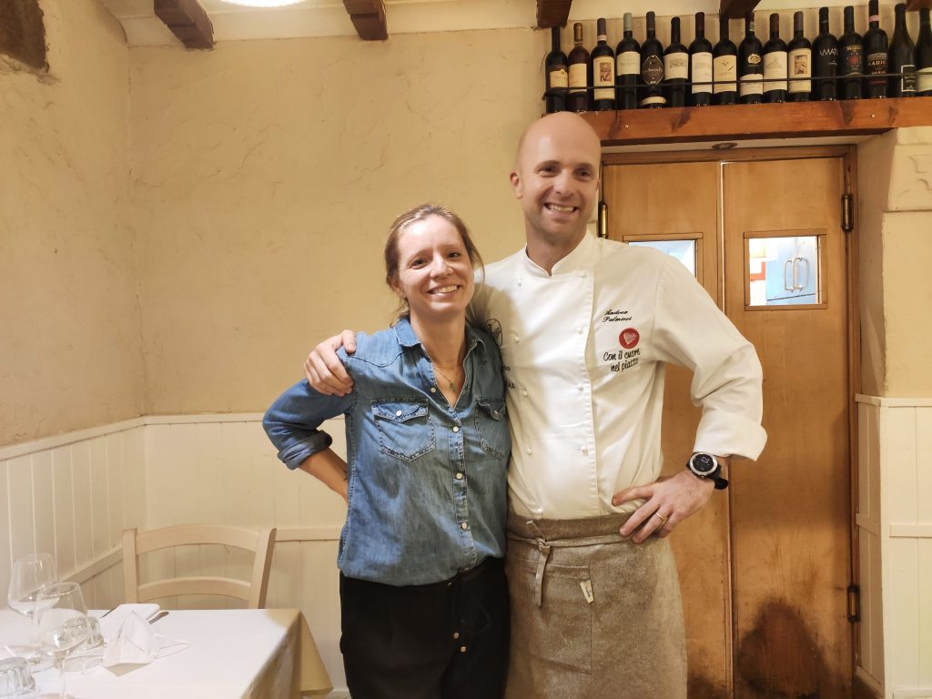 Alla guida del ristorante Andrea e Francesca Romana Palmieri, due fratelli molto affiatati e solari, un tempo lontanissimi da questo mondo. Lui ai fornelli è un ex studente di medicina con un passato da broker finanziario. Oggi dopo 15 anni d’esperienza è chef e docente di cucina. Lei invece è sommelier Fis ma un tempo sognava di fare la regista, ora si occupa della cantina e di coordinare il servizio in sala.