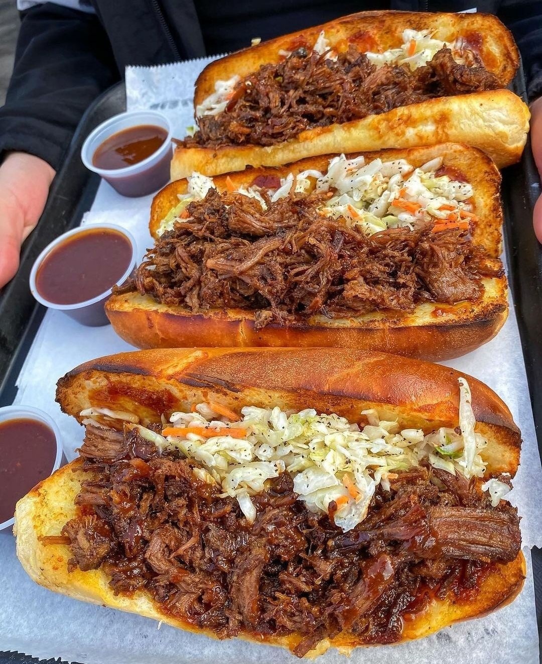 Poi il verde intorno, un chiosco per le bevande, e la cucina che c’è ma non si vede. Quello che ben si vede è invece ciò che arriva nei packaging street food contenti tante chicche per gli appassionati dello smoke barbecue.