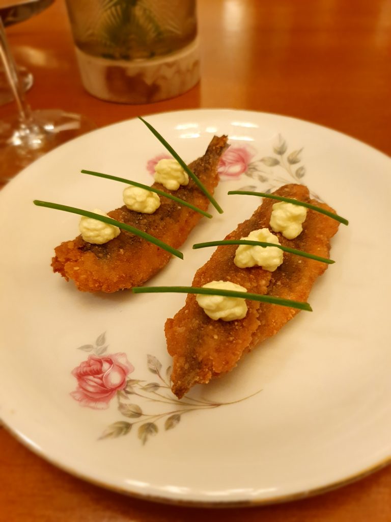 In menu si possono trovare le sfiziosissime Alici fritte, ripiene di patata aromatica, accompagnate da maionese agli agrumi, un ottimo Baccalà mantecato servito con amarene e pane carasau e i Calamari e radici.
