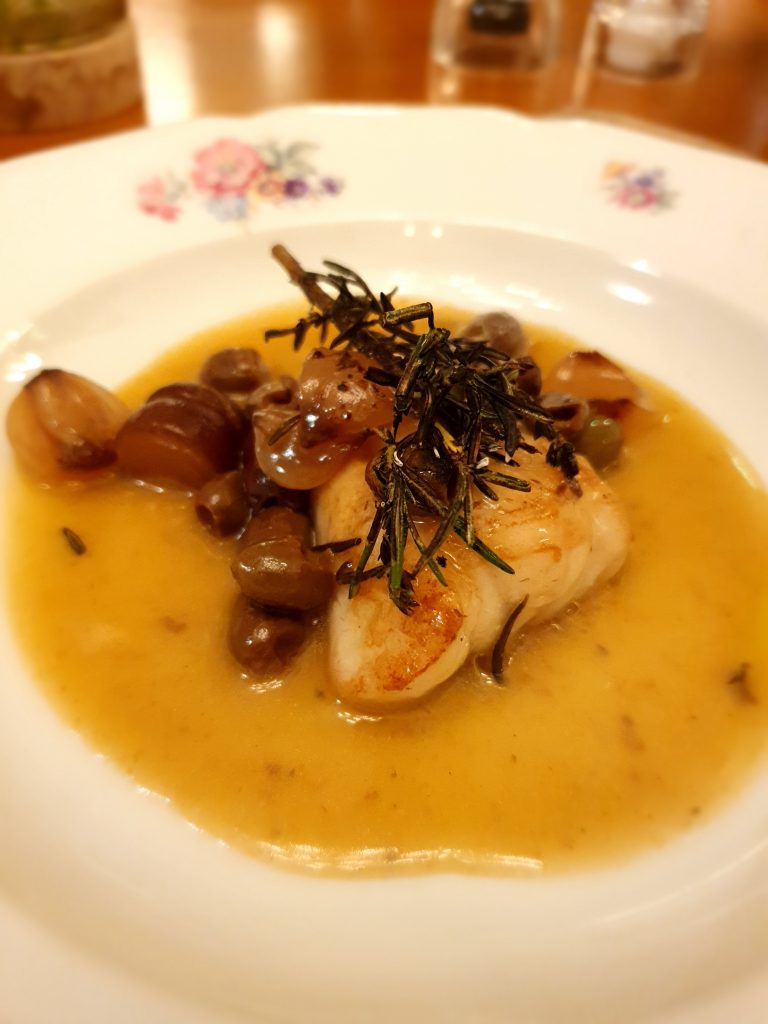 Tra i secondi di mare la fanno da padroni il Baccalà alla puttanesca con pomodori datterini gialli e rossi, fiori di cappero e olive taggiasche, e la Rana pescatrice alla cacciatora con cipolle borettane, capperi, rosmarino e olive taggiasche.