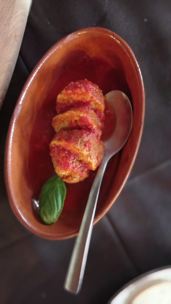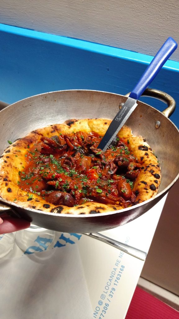 Per la cena, abbiamo optato per una novità. Un ristorante di pesce nel cuore di Caiazzo, la sfida di Mariano Bruno, attore comico con la passione per la ristorazione. Ad attirarci, non solo la formula atipica per il territorio, ma soprattutto il piatto creato a quattro mani con un simbolo dell’alto casertano.