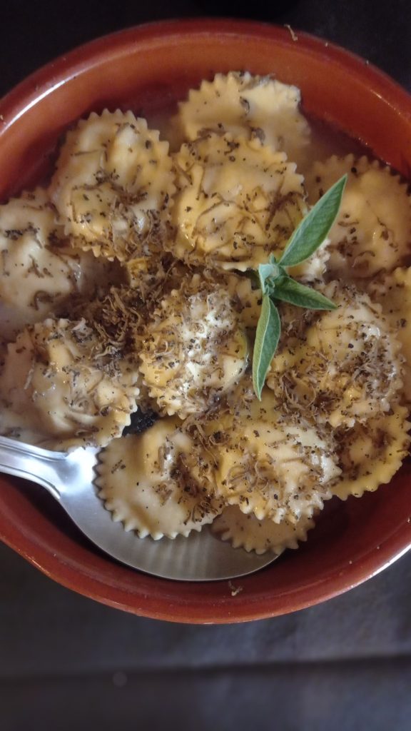 Ci rendiamo conto di essere nel regno del formaggio matesino. Abbiamo assistito alle lavorazioni, fatto shopping, soprattutto ci siamo accomodati ad una tavola di soli prodotti locali. Cucina semplice, saporita. Ci accoglie Maria D’Abbraccio, giovane biologa e perfetta front-woman di un’azienda che merita di essere conosciuta: tutto quello che c’è dietro un semplice pezzo di formaggio. Siamo circondati di agnelli eppure molti piatti sono vegetariani. Cediamo alla degustazione dei formaggi di casa, per continuare con i ravioli di ricotta di pecora e tartufo scorzone nero del Matese. Assaggiamo anche una romantica polpetta vegetariana: la “Caso e Ova”, a base di pane raffermo, formaggio ed uova. Intorno a noi, pecore che allattano, cuccioli di Border Collie che diventeranno insostituibili pastori, la vita è semplice e tutto ha un senso. E soprattutto, un compito.