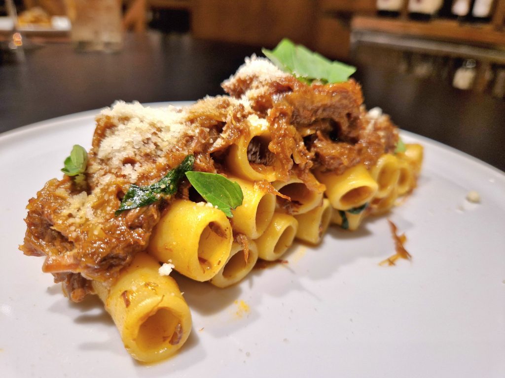 In carta anche fritti, arrosticini, bombette, polpette, ma anche primi piatti della tradizione partenopea. Abbiamo assaggiato la Genovese, il famoso ragù napoletano a base di cipolla e carne, preparato con un tris di presidi Slow Food: le cipolle di Alife, Airola e Vatolla. Ottimi gli arrosticini (di bovino), mentre imponente è stato l’Asado, l’arrosto argentino qui marinato, cotto a bassa temperatura e scottato sulla brace.