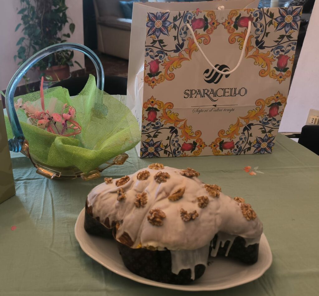 Giuseppe Sparacello, noto pasticcere siciliano con due locali, uno a Castronovo di Sicilia e uno a Mussomeli, in occasione delle festività pasquali propone sei irresistibili referenze: classica con glassa alle mandorle e cubetti di arancia, amarena; albicocche e noci con glassa bianca e noci tostate; al limoncello con impasto al limone e crema al cioccolato bianco e imbevuta con una bagna al limoncello e glassata al cioccolato bianco; rum, cioccolato e pera con crema di cioccolato e pezzi di pera all’interno e una bagna al rum e glassa al cioccolato; al cioccolato con impasto al cioccolato, gocce di cioccolato fondente e glassa al cioccolato e, infine, quella al pistacchio con impasto e glassa al pistacchio e crema al pistacchio nel vasetto da aggiungere a parte.