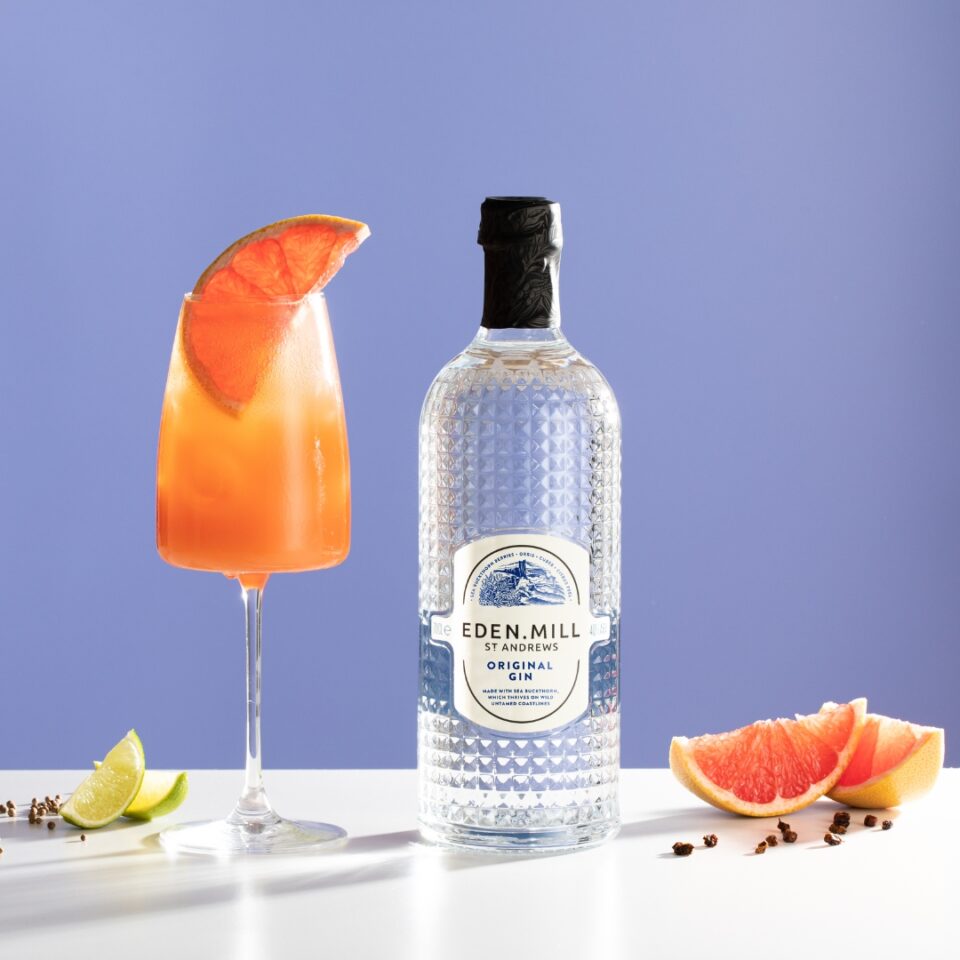 Unire Eden Mill Original Gin, la soda Le Tribute Pink Grapefruit e il Campari in un calice o un bicchiere alto riempito con ghiaccio. Riempire con il prosecco. Guarnire con una fetta di pompelmo rosa o d’arancia.