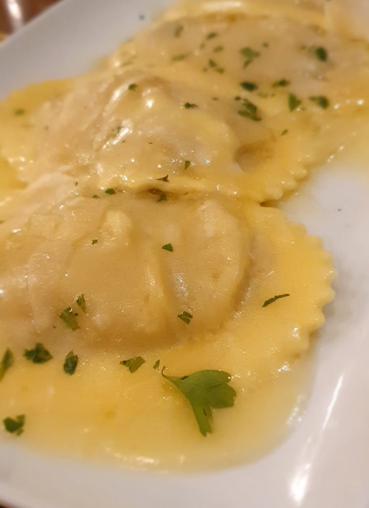 Fiore all’occhiello, la pasta fatta in casa come i ravioli ripieni di funghi porcini, i pici al sugo bianco di agnello e gli gnocchi di patate ripieni di manzo.