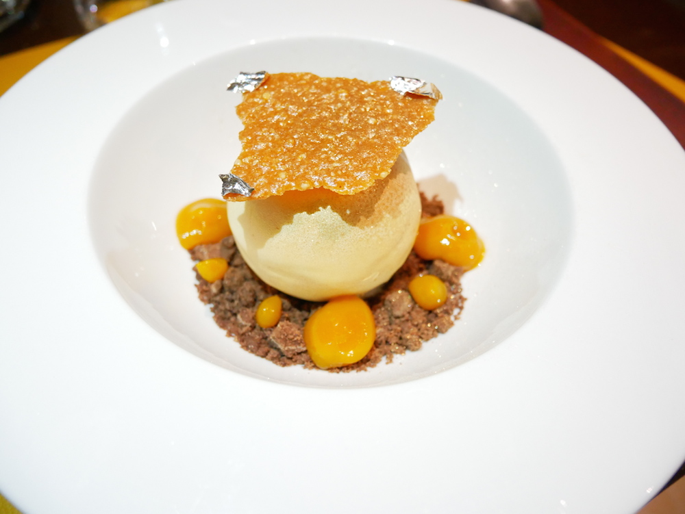 Chiudiamo in bellezza con i dessert: Inverno (10 euro) una sfera croccante di cioccolato dal cuore di mousse al cioccolato bianco, nougatine all arachide, sablè al cacao e composta al mango; e poi ecco la splendida Carezza(10 euro), una mousse alla pera delicata ed eterea, arricchita da un geleè di camomilla e racchiusa all’interno di una riproduzione perfetta del tipico frutto invernale, tutt’intorno, pezzi di honey comb, un delizioso croccante al miele a nido dape, e sablè alle noci. Un dessert mozzafiato, che è una gioia assoluta per gli occhi prima, e per il palato poi.