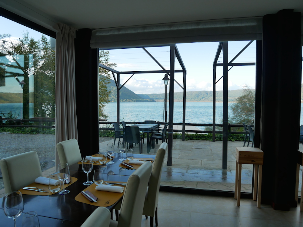 Nella bella stagione ci si può sedere nel verde del suo giardino, e in pieno relax sdraiarsi al sole della sua piccola spiaggia. Ma l’asso nella manica della location, è la vista panoramica che si gode dalla sua sala principale, che sembra quasi fluttuare sulle acque lacustri: mangiare qui vi darà la sensazione di trovarvi a metà tra cielo e terra, a bordo di una nave attraccata pronta a salpare verso acque internazionali.